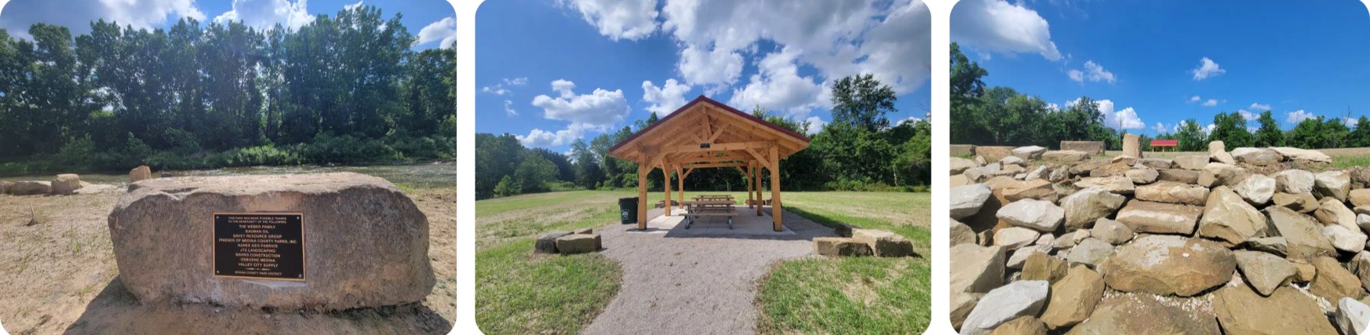 Medina County Park District celebrated the opening of its 23rd park, the Zachary A. Weber Riverside Park on Zack’s 23rd birthday, July 4, 2025. Zachary A. Weber Riverside Park was built on land that was donated in memory of a young Buckeye High School graduate who passed away unexpectedly in May 2024. Phase 1 includes a small parking lot, open-air picnic shelter, seating, and great views of the Rocky River as it flows north through Liverpool Township.